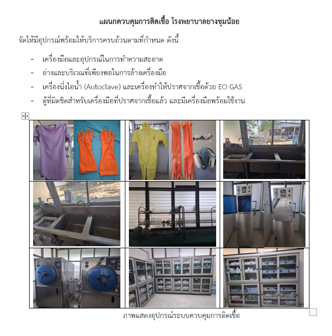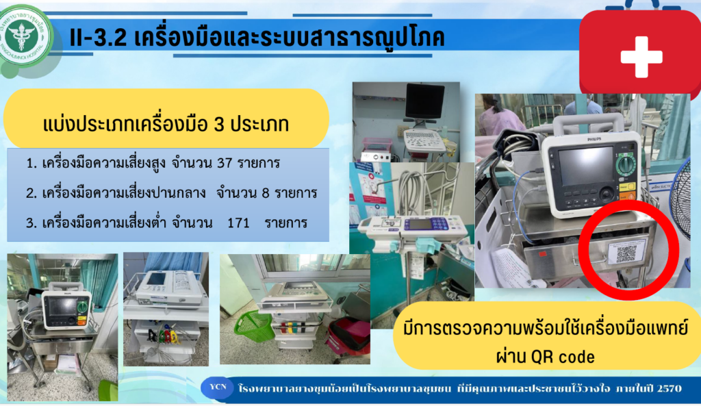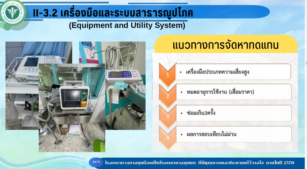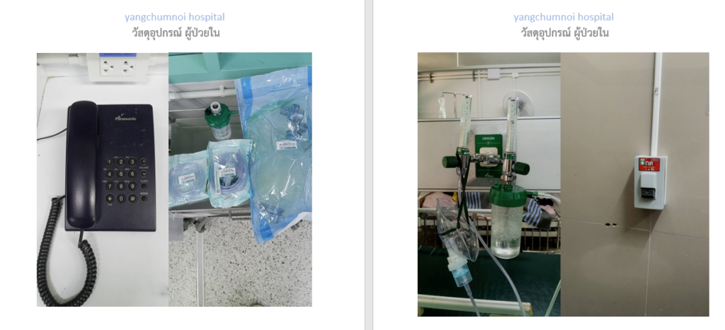 2) อุปกรณ์ประจำเตียงและห้องผู้ป่วย ได้แก่ เตียงที่ได้มาตรฐานทางการแพทย์ เครื่องดูดเสมหะ ออกซิเจนและอุปกรณ์ช่วยหายใจ และมีระบบเรียกพยาบาล