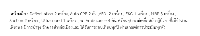 แผนกผู้ป่วยฉุกเฉิน จัดให้มีอุปกรณ์พร้อมให้บริการครบถ้วนตามที่กำหนด